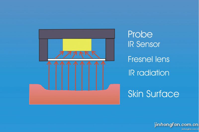 探頭通過傳感器接收皮膚表面發(fā)出的紅外線來(lái)測(cè)試皮膚表面的溫度,這是一種皮膚 表面溫度的非接觸式測(cè)量方法??梢杂眠@種方法來(lái)測(cè)定皮膚表面在使用化妝品之后的微循環(huán)變化。