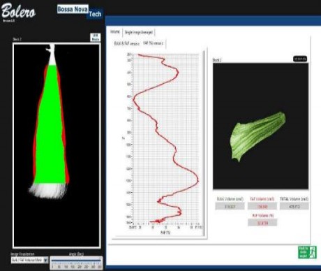 由于發(fā)束是由許多根邊界劃分不明確的單根頭發(fā)構(gòu)成,發(fā)束分析非常困難,幾乎不可能用 一個(gè)3D掃描儀重建發(fā)束的3D形態(tài)。發(fā)束體積測(cè)試系統(tǒng)BOLERO是一個(gè)發(fā)束3D形態(tài)重建和卷 曲程度分析系統(tǒng)。通過(guò)分析發(fā)束不同角度拍攝的圖像的光的透射程度的變化情況評(píng)估頭發(fā)的 密度,測(cè)出發(fā)束的體積,卷曲部分體積占全部體積的百分比。