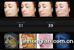 VISIA面部圖像分析儀可以得到如下的八幅面部圖像。其中標(biāo)準(zhǔn)白光四幅,可定量分析面部 的斑點,毛孔,皺紋和平滑度。UV光圖像二幅,可以定量分析面部下層的紫斑和卟啉。交叉 偏振光圖像兩幅,可以定量分析面部皮膚下層的紅區(qū)和褐色斑狀況。